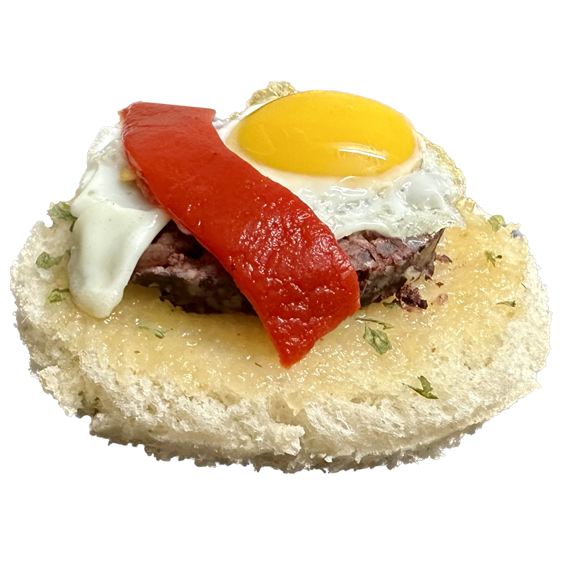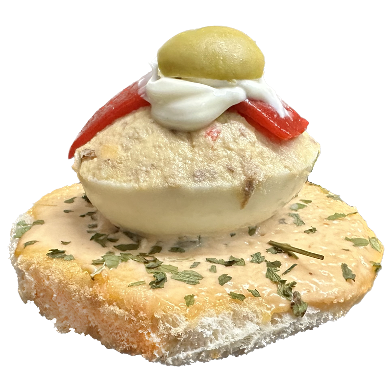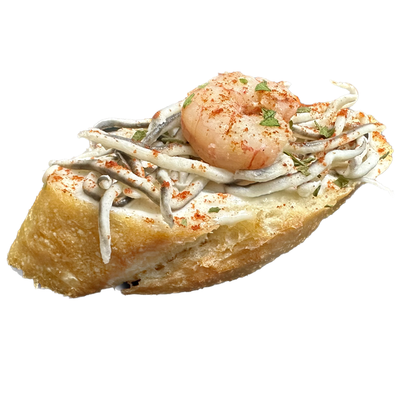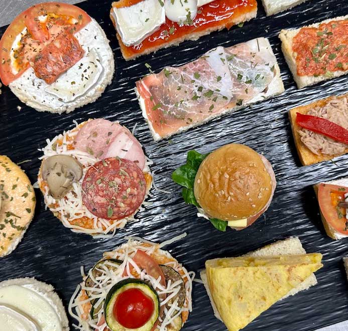 Eels with shrimp, Anchovy with fresh cheese, 4 cheeses, Black pudding with quail egg, Tuna with peppers, our famous Octopus tapa, Chistorra, Roquefot Sirloin, or Spanish Omelette, among them